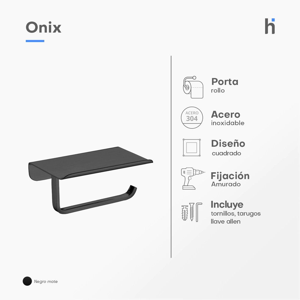 Diseño limpio, funcionalidad total. El portarrollos Ónix HI AC405 destaca por su estilo sobrio y moderno, con una terminación negra mate que aporta distinción al baño. Su diseño cerrado oculta parcialmente el rollo, brindando una apariencia más prolija y elegante. Ideal para quienes buscan una propuesta estética uniforme en todos los detalles.